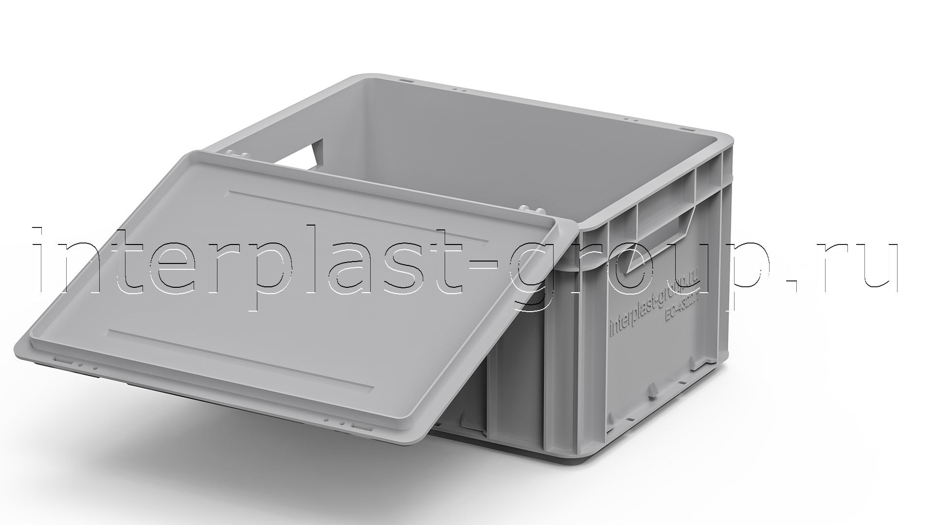 Евроконтейнер открытые ручки/сплошное дно (серый), 400x300x220 мм