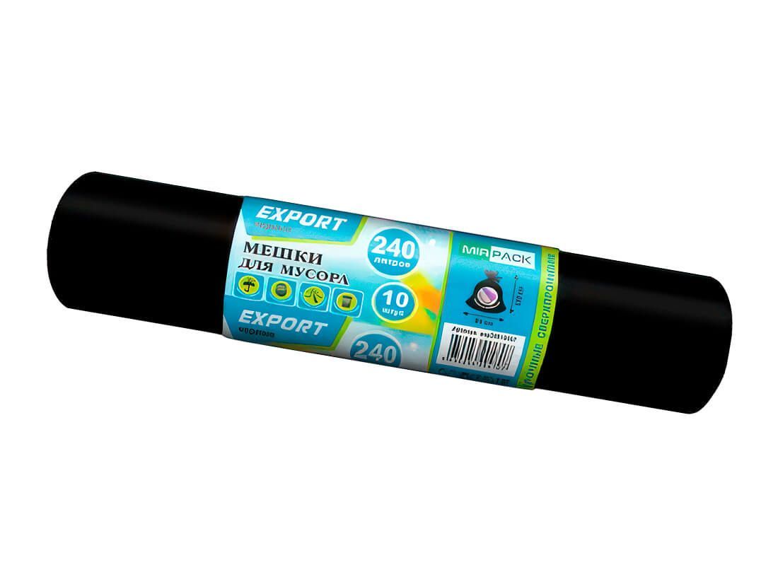 Мешки для мусора 240 л, черные, в рулоне 10 шт., ПВД 80 мкм, 1300х930 мм, EXPORT, exp 24010167