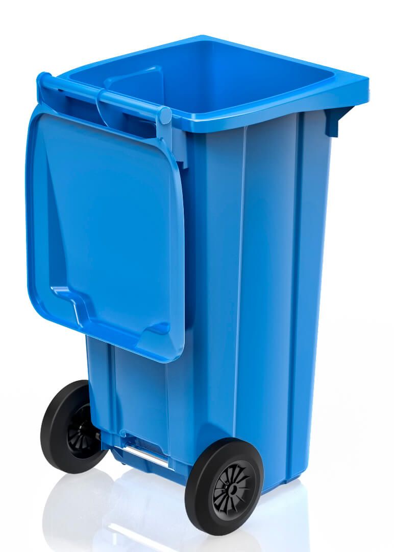 Синий контейнер для сбора мусора помогает организовать систему раздельного сбора отходов, повышает культуру обращения с мусором и подчёркивает экологическую ответственность.