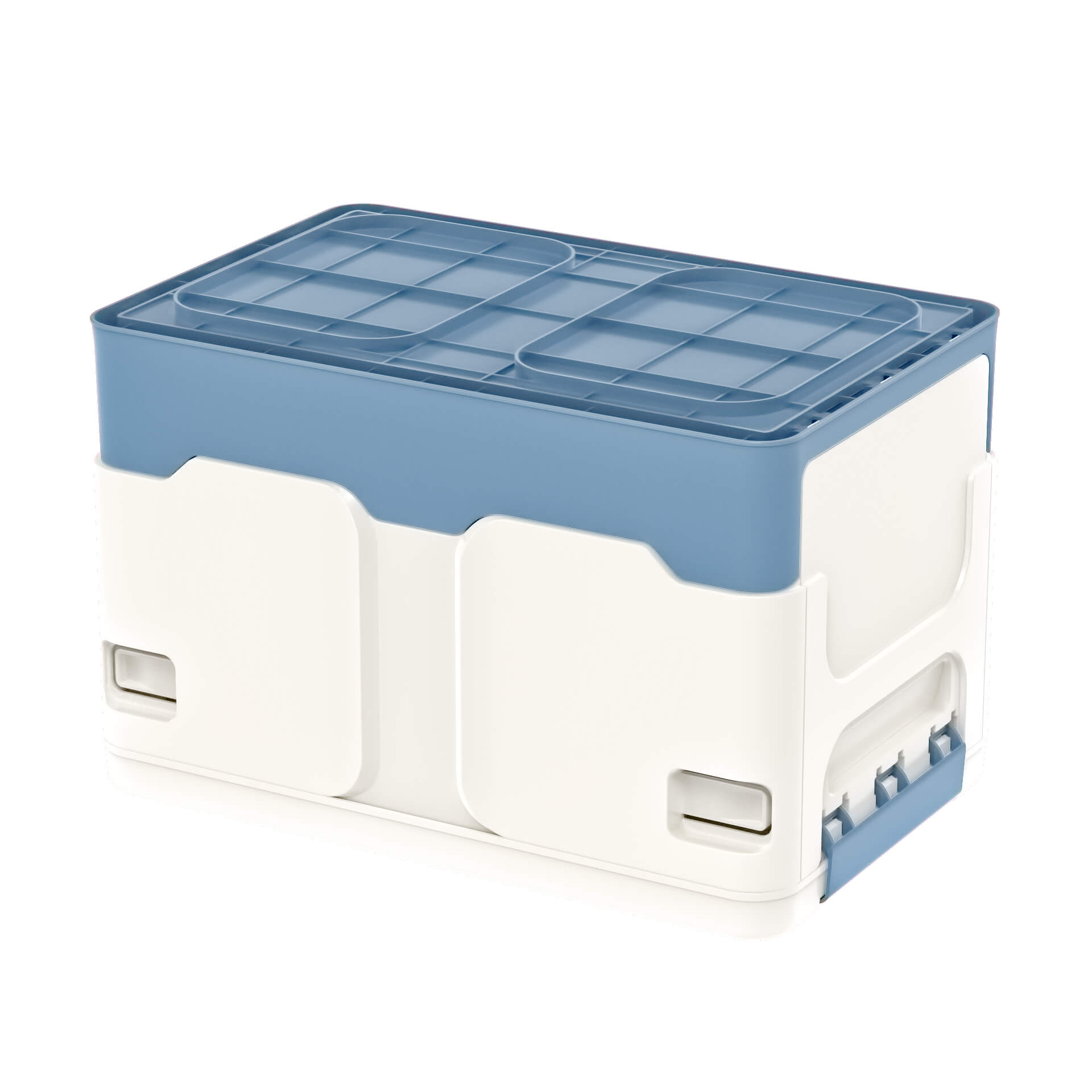 Ящик пластиковый складной белый, дно синее, 370х240х240 мм