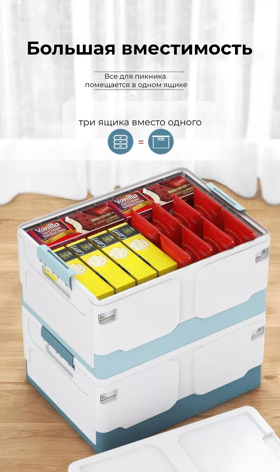 Пластиковая коробка с крышкой защищает содержимое от пыли и влаги, а прочная конструкция гарантирует надежность и долговечность. Складной контейнер легко складывается, экономя место, когда не используется, а удобные ручки обеспечивают комфортную переноску.