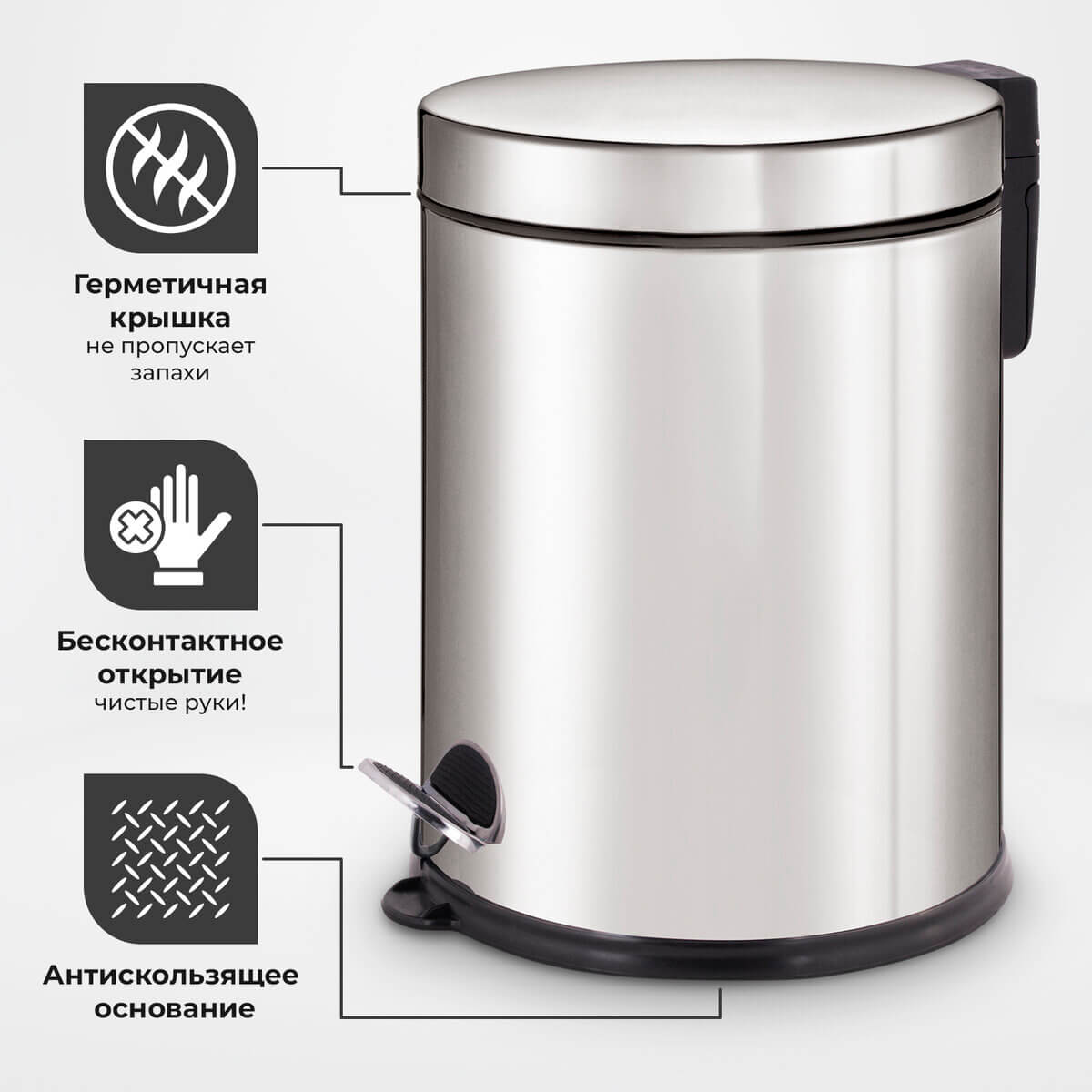 Ведро-контейнер для мусора урна с педалью LAIMA Classic Plus, 12 л, зеркальное в Мичуринске