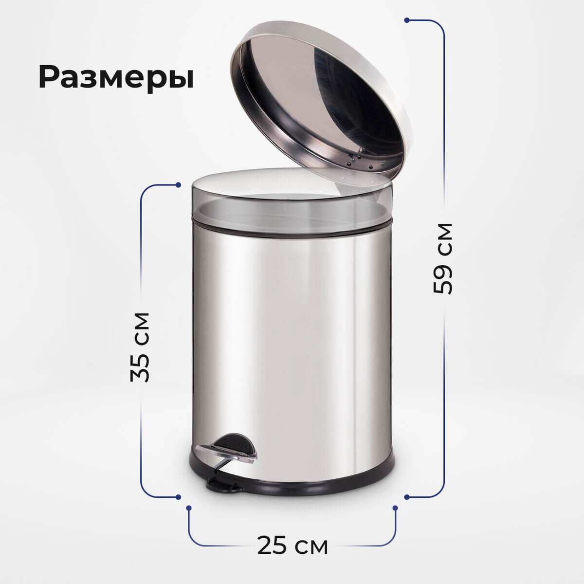 С вместимостью 12 литров, это ведро идеально подходит для помещений с средней проходимостью. Педаль облегчает открывание крышки, а плотное прилегание её к корпусу надежно удерживает запахи. Внутренний пластиковый контейнер снабжен удобной ручкой для легкого извлечения.