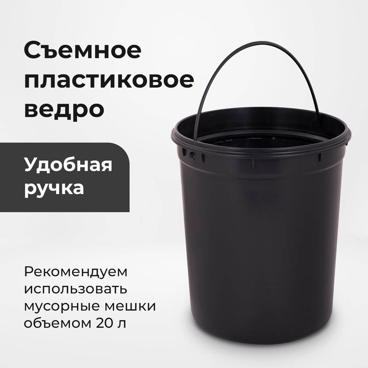 Изготовленное из нержавеющей стали с антикоррозийным покрытием, ведро гарантирует долгий срок службы. Антискользящее основание придает устойчивость. Рекомендуемый объем мешка - 20 литров.