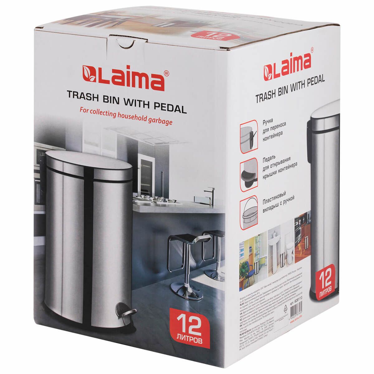 Ведро-контейнер для мусора урна с педалью LAIMA Classic Plus, 12 л, зеркальное